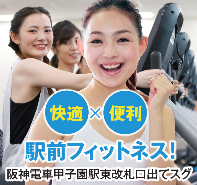 甲子園駅から徒歩1分の駅近スタジオ・ジム・プールのアットホームフィットネス。