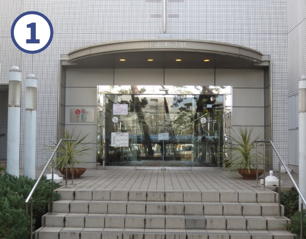 館内図で1Fか2Fを選択していただき、左下のマップと同じ番号を右下の場所の名称を選択してクリックするとその場所の写真・説明に変わります。