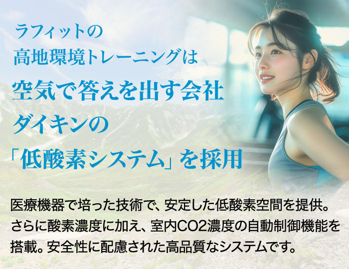 酸素濃度が低い環境はその中にいるだけで体に負荷がかかり、いつもと同じ速度、同じ時間の運動を行ったとしても、多くのエネルギーを消費します。