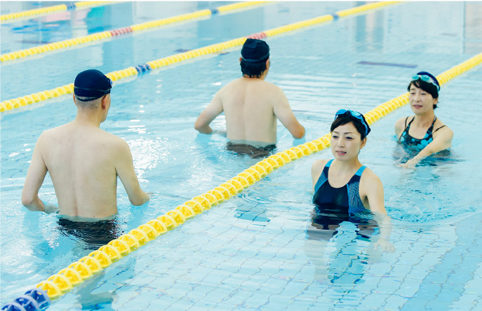 プールで水の抵抗を利用した全身運動や泳法レッスンを実施。