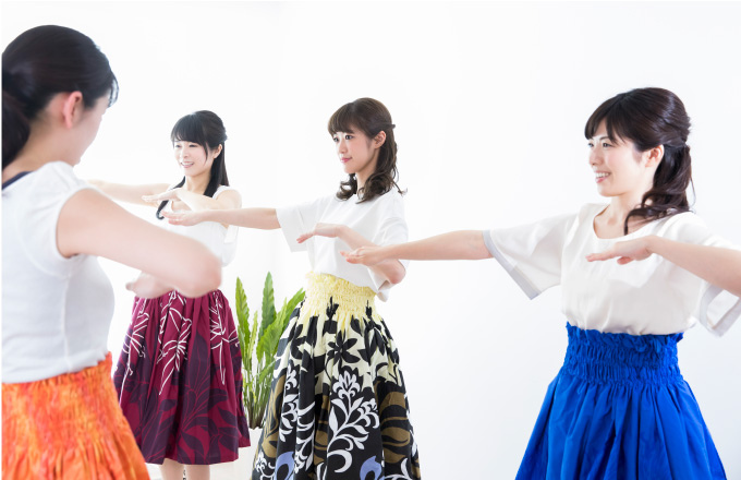 | フラダンス | 45分 | ハワイアンミュージックに合わせてゆったりと手足の動きをつけていくクラスです。お腹と下半身の引き締めにオススメです。 |
