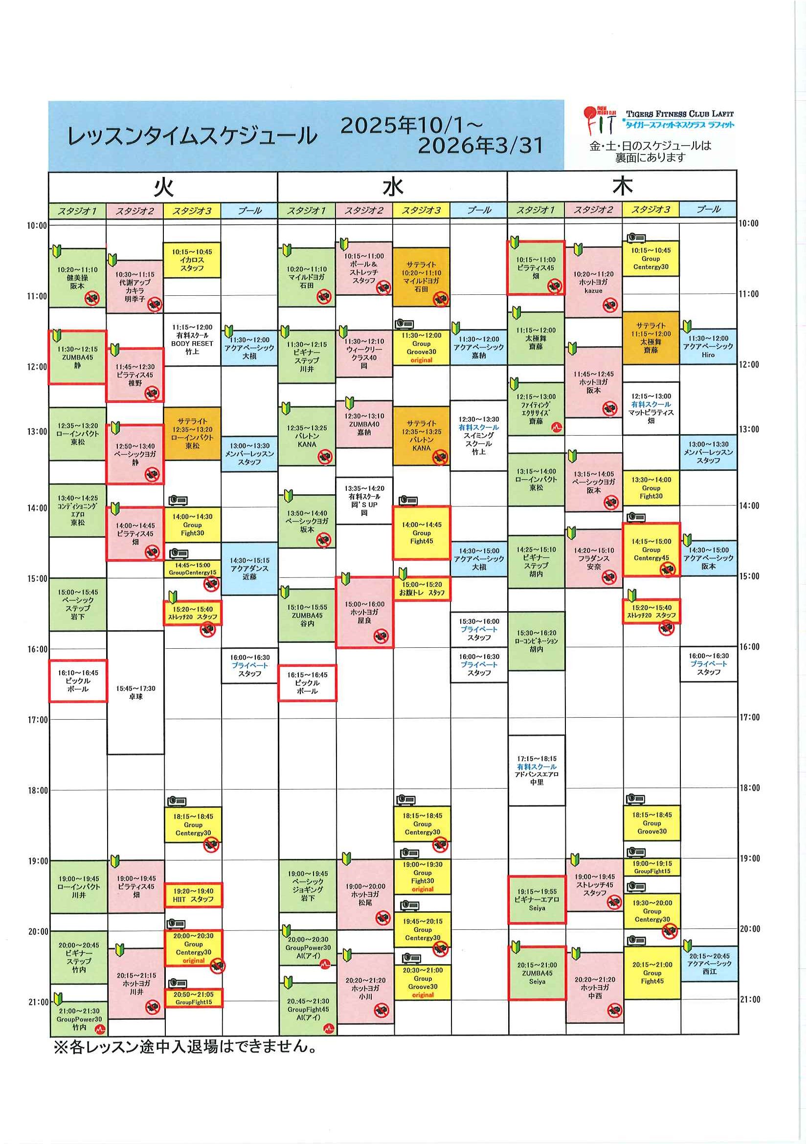 2月度スタッフ担当レッスン予定表