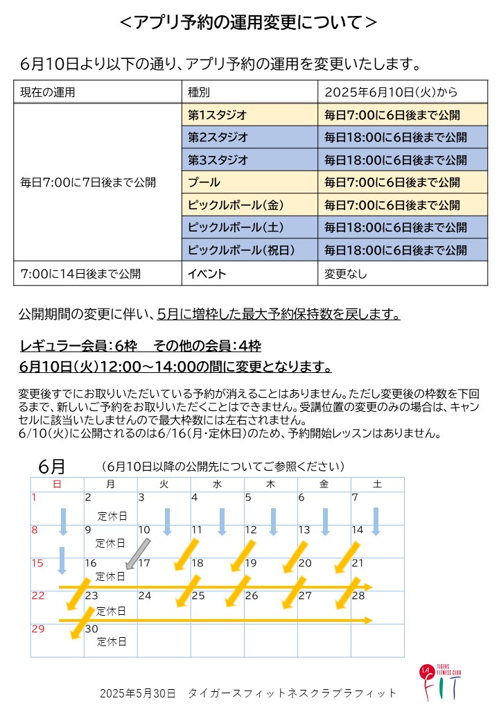 会員の皆様へ『アプリ予約の運用変更について』